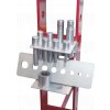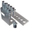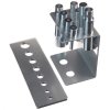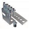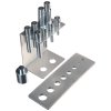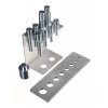 Zum Ein- und Auspressen von Wellen, Zapfen, Hülsen und anderen Teilen in der Automobiltechnik. Im Set enthalten ist ein Halter zum Befestigen an der Presse mit einer Pressmatrix 310 × 100 × 10 mm, Reduktion und Stempel ø10 × 50, ø12 × 60, ø16 × 60, ø18 × 85, ø20 × 85, ø22 × 85, ø25 × 105 und ø30 × 110 mm. Durchmesser des Befestigungsschafts 24,5 mm, Material vergüteter C-Stahl C45.