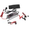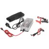 Automatische Ladestation mit Ladestrom 7,5 A (12 V)/3,75 A (24 V), geeignet für Blei-, AGM-, Gel- und Lithium-Nachladeakkus 12 V mit Kapazität 18 – 240 Ah (12 V) und 10 – 120 Ah (24 V). Das Ladegerät kann sogar Akkus mit Spannung von 2 V (12 V Akku) und 16 V (24 V Akku) wiederaufladen, LCD-Anzeige, Versorgungsspannung AC 230 V/50 Hz. IP65-Schutz, Speicherfunktion nach Neustart, Abmessungen 220 × 92 × 60 mm.