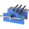 Zur Montage auf die Arbeitstisch- oder Hobelbankplatte. Präzise Führung mit 2 Führungsstangen. Die Gusseisenbacken entwickeln einen gleichmäßigen Druck auf das befestigte Material, Befestigungsöffnungen für Holzlaschen auf beiden Seiten dienen als Schutz gegen Druckstellen am befestigten Material und als Klingenschutz bei der Arbeit mit einem Hobel, einer Säge oder einem Meißel. Öffnungsweite 105 mm.