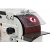 Tisch-Bandschleifmaschine zum Schleifen sowohl an der oberen Fläche, als auch an der Stirnwalze, wo auch eine praktische Stütze zur Verfügung steht. Spannungsversorgung 400 V/50 Hz, Leistungsaufnahme 1,5 kW. Bandmaße 100 × 1 220 mm, Geschwindigkeit 19 m/s.