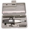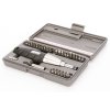 Patentierter Schraubenzieher mit der Möglichkeit der Einstellung des Anzugsdrehmoments. Die Vorwahl des Momentes wird mit einem beweglichen vorderen Teil des Griffs mit dem Schloss durchgeführt. Den eingestellten Moment kann man bequem an der im Griff platzierten Skala verfolgen. Geliefert im Kunststoffkoffer mit 28 Stück Bits aus Stahl S2. Genauigkeit in Anziehrichtung ± 6 %, max. Anzugsdrehmoment 4 Nm, Material der Bits S2, Länge 180 mm.