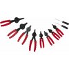 Zangensatz 8 St. für Innen- und Außensicherungsringe. Die geraden und gebogene Zangenbacken verschiedener Längen erfüllen alle Anforderungen bei der Montage in schwierig zugänglichen Plätzen. Der Satz enthält weiter 2 St. Abzieher für O-Ringe und Dichtungen. Im Kunststoffkoffer verpackt.