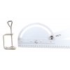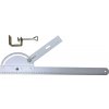 Längenarm 550 mm mit einer Skala in mm, beweglicher Arm im Bereich ± 70° von der Senkrechten, Arme aus Aluminium, komplett mit Schraubzwinge zur Befestigung an der Plattenkante.