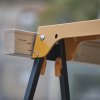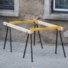 Arbeitsziege der Marke STRONGBOLD mit einer Arbeitshöhe von 75 cm. Rutschfeste Fußenden. Stahlkonstruktion mit langlebiger Pulverbeschichtung. Belastbarkeit paarweise bis 900 kg. Eingelassener Griff für einfachen Transport. Abnehmbare Arme für bis zu 45 mm breite Balken (2x4), um eine Arbeitsfläche oder einen Tisch zu schaffen. Kann auch als Stütze beim Schneiden verwendet werden. Dank des praktischen Faltmechanismus lässt sich die Ziege im Handumdrehen überall zusammenfalten.
