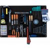 Sthahlwandtafel mit magnetischen Anhängelementen und einem Montagesatz zur Befestigung. Grundsatz 14 St. Anhängelemente mit Tragfähigkeit je nach Art des Elements von 0,5 – 4 kg. Abmessungen der Wandtafel 600 × 600 mm.