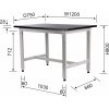 Leichter und fester Arbeitstisch aus Metallprofilen, hochwertige Arbeitsplatte und Nivellierfüße. Material Platte – MDF 25 mm + 2 mm PVC.