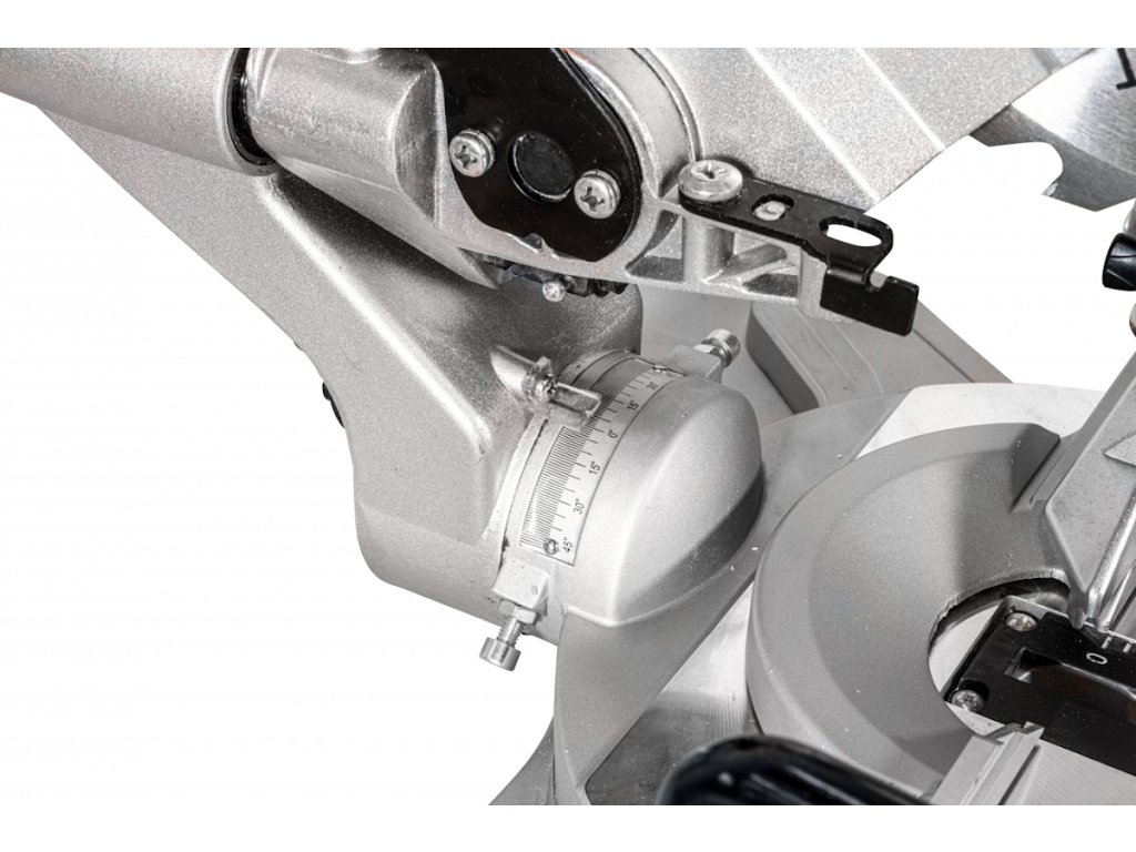 Radialer Vorschub des Schneidwerks (Zerteilen von Schnittholz bis zu einer Breite von 340 mm); BS - Einstellung der Neigung des Sägekopfes im Bereich von 45° auf beiden Seiten.