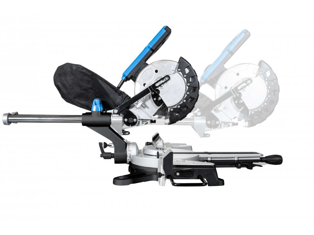 Aufbau: Rohrfahrwerk, Steuergriff mit Weicheinlage, Pendelscheibenabdeckung, Absauganschluss (Fangsack), Tisch inkl. Klemmschellen und Anschlagschienen, Transportgriff.