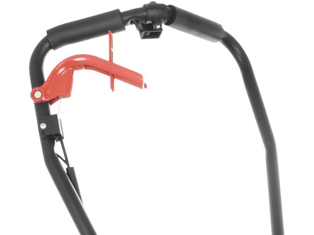 5-stufige Einstellung der Arbeitstiefe des Messers (Bereich: +22 bis -28 mm), ergonomisch geformter Steuergriff mit Gashebel.
