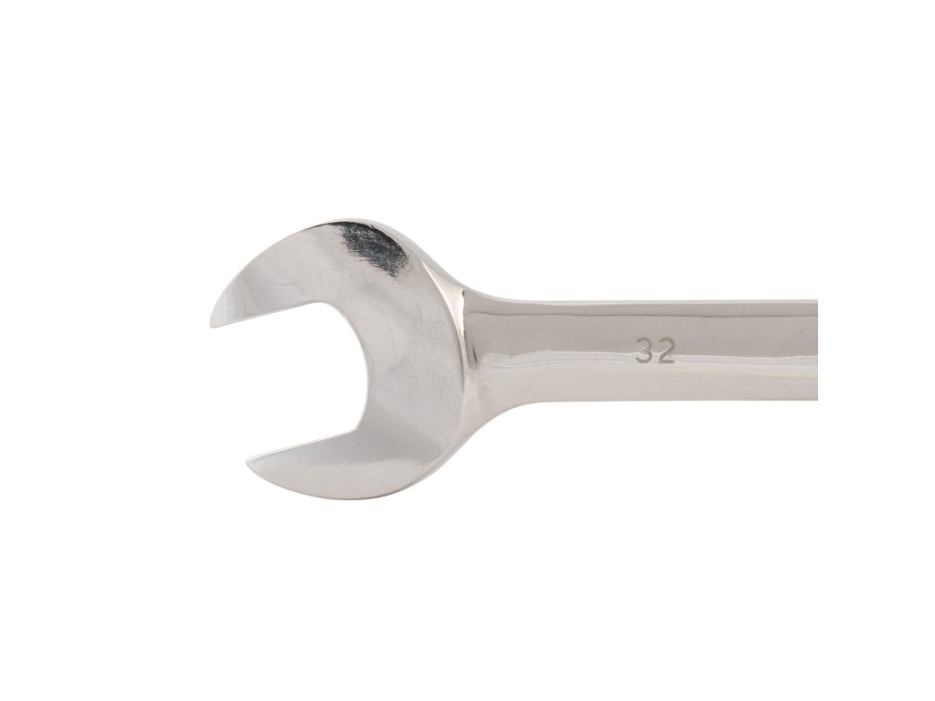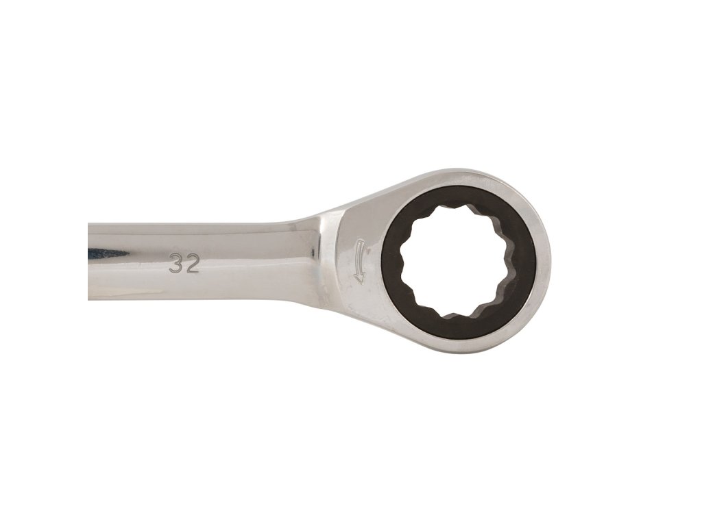 Vergüteter Chrom-Vanadium-Schlüssel mit polierter Oberfläche für Korrosionsbeständigkeit. Kombination aus Seitenschlüssel und Ratschenschlüssel mit 5° Ratsche. Es ermöglicht einen einfachen Zugang bei beengten Platzverhältnissen.