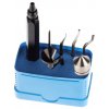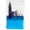 Das Set ist in einer Kunststoffbox mit den Abmessungen von 78 × 48 × 125 mm aufbewahrt.