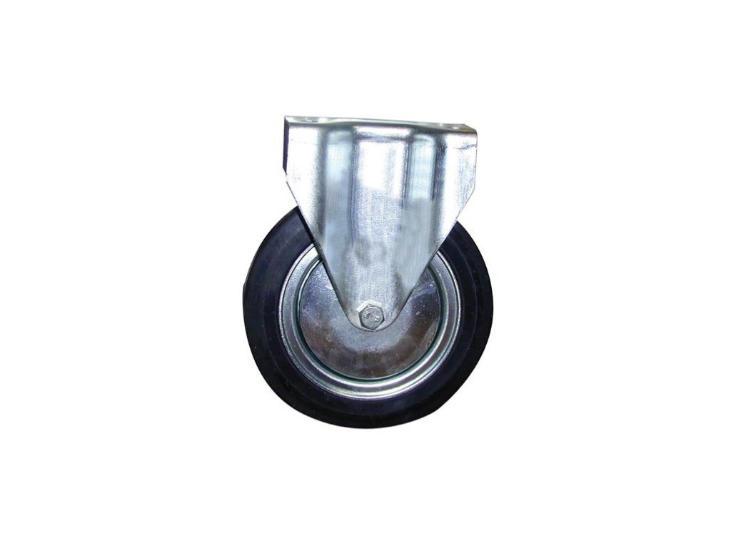 Eine Bockrolle, die für unebene und harte Oberflächen ausgelegt ist und oft auf Recyclingbehältern montiert wird.
