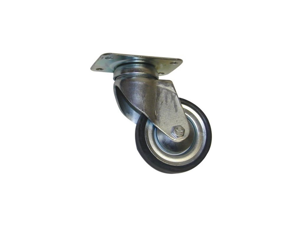 Ein Schwenkrad, das für unebene und harte Oberflächen ausgelegt ist und oft auf Recyclingbehältern montiert ist.