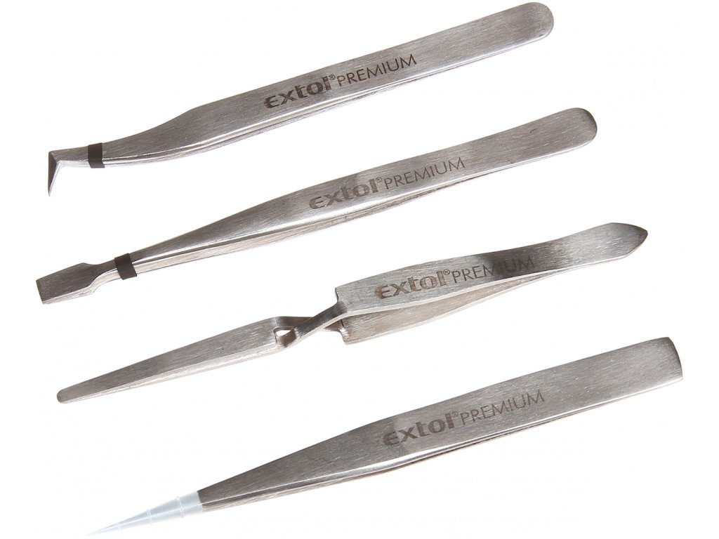 4 Greifzangen: Nadel-Greifzange 126 mm, flache Greifzange 118 mm, selbsthemmende Kreuz-Greifzange mit abgerundetem Ende 126 mm, gebogene Greifzange mit scharfer Spitze 113 mm, aus rostfreiem Stahl 201, beständig gegen Säuren, gehärtet auf HRC30, für verschiedene Feinarbeiten in der Werkstatt und im Haushalt.
