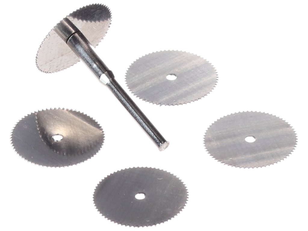 Pilové kotoučky z rychlořezné oceli pro řezání dřeva, slitin, plastů a skelných vláken. Kompatibilní s většinou rotačních nástrojů včetně Silverline, GMC a Dremel. Obsahuje 5 kotoučů průměr 22 mm a 3,17 mm trn. Maximálně 28 000 ot./min.