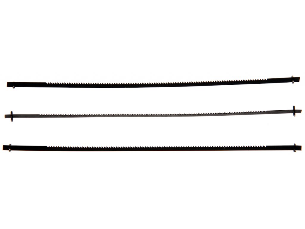 3 Stahlsägeblätter, zum Schneiden vom Weich-/Hartholz, Sperrholz, Tischler- und Holzfaserplatten, Kunststoff, Gips usw. bestimmt. 25 Zähne je Zoll, Länge 132 mm.