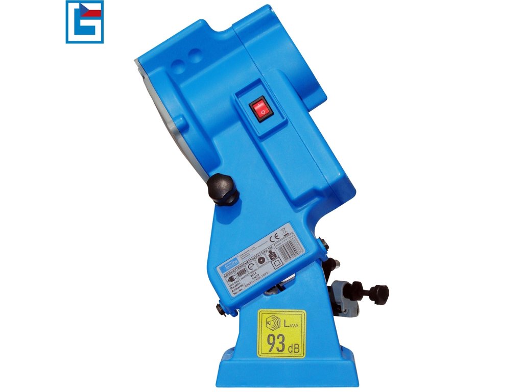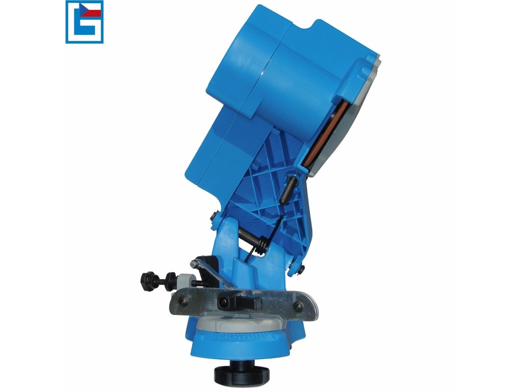 Einfaches Einhängen/Arretieren der Sägekette, beidseitiges Schärfen aller Kettenglieder durch drehbaren Spannmechanismus, bequemes Schleifen der Zähne durch Druck auf das Motorgehäuse.