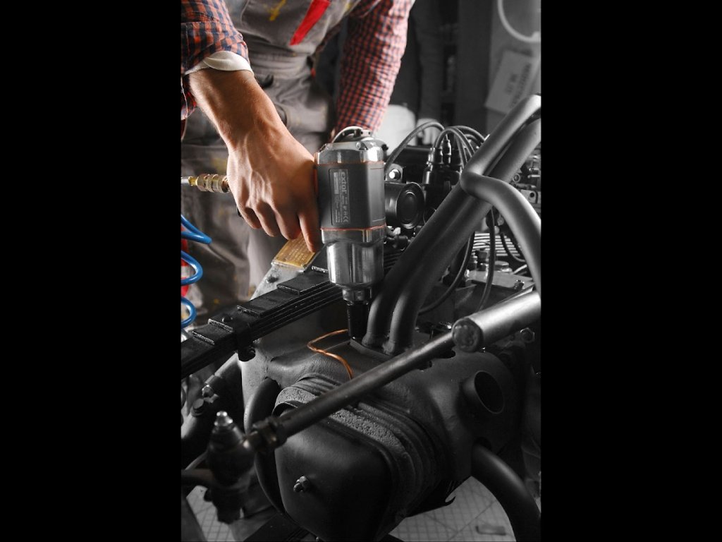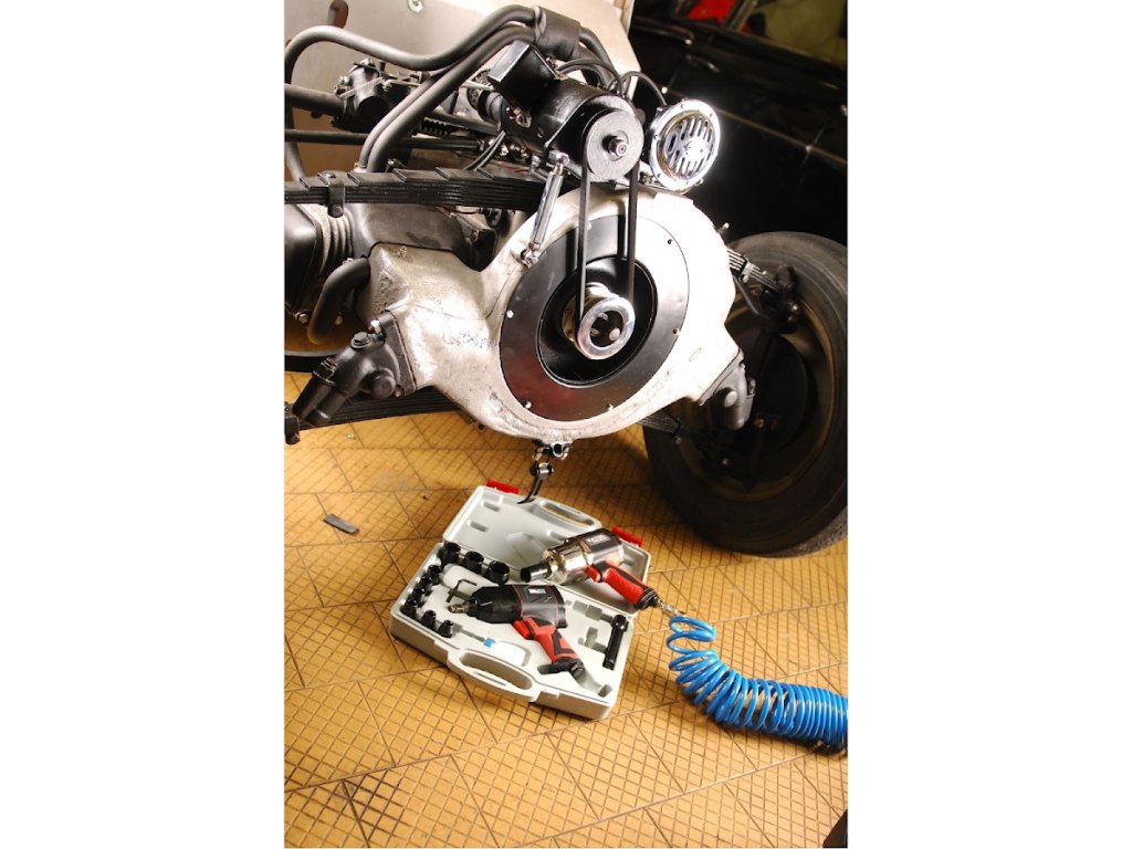 - Zubehör: Steckschlüsseleinsätze 9 - 10 - 11 - 13 - 14 - 17 - 19 - 22 - 24 - 27 mm, Verlängerung 125 mm, Inbusschlüssel 4 mm, Ölkanister, Anschluss für Schnellkupplung, Transportkoffer