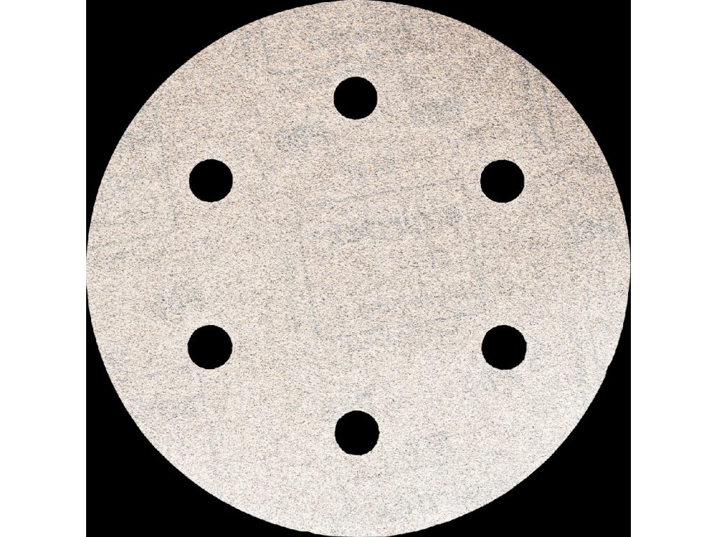 Zum Trockenschleifen geeignet, mit Absauglöchern ø 17 mm, Untergrund Latexpapier, Korn Aluminiumoxid, Harzbindemittel, Kornstreuung geöffnet, Stearatschicht gegen Verstopfung, Klettverschlussbefestigung.