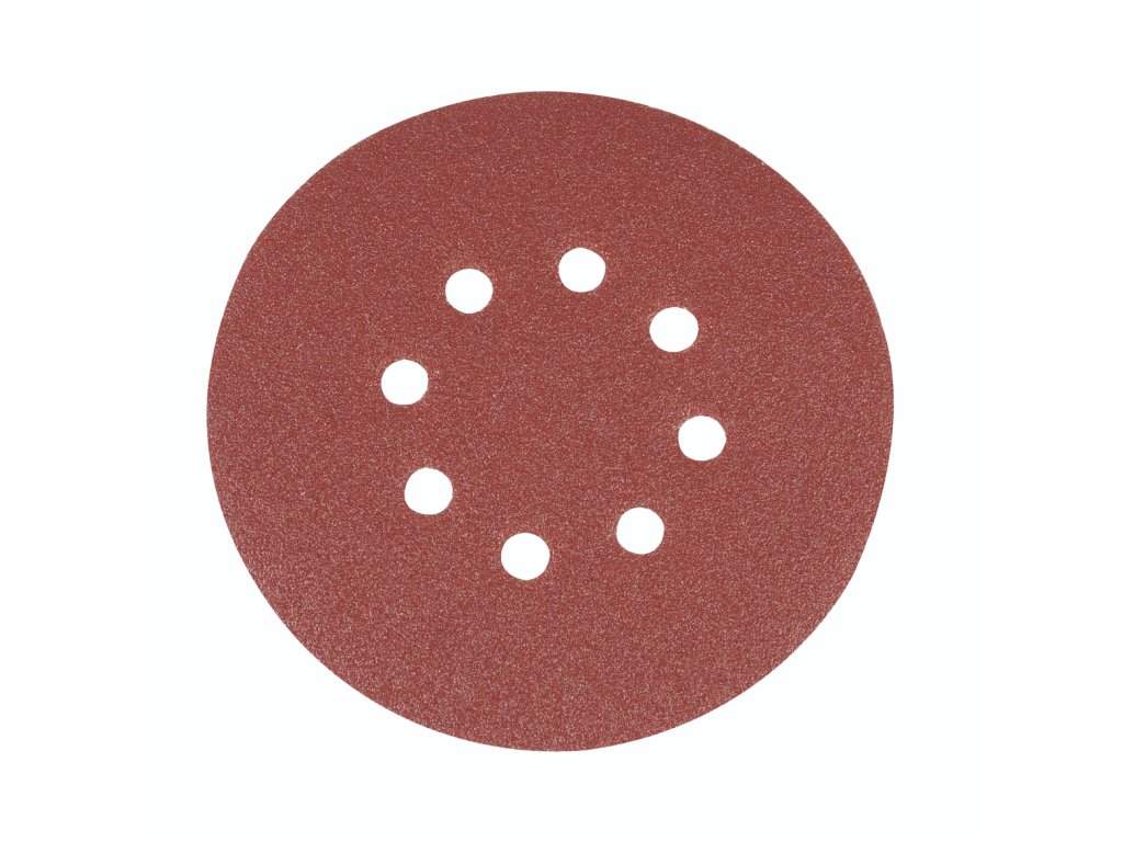 Aluminiumoxidscheibe mit acht Staubabsauglöchern. Geeignet für alle Arten des Schleifens. Kompatibel mit Exzenterschleifern.