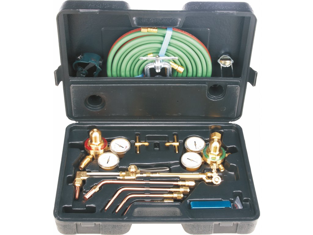 Die Schweißklassik im Koffer - leichter und hochwertiger Schweiß- und Azetylenset, für verschiedene Werkstattanwendungen, vor allem für „heiße″ Klempnerarbeiten geeignet. Alles nötige zum zusammenstellen der Schweiß- oder Schneidpistole im mobilen Kunststoffkoffer enthalten. Kofferinhalt: Sauerstoff- und Gasregler, Universalpistole mit Sauerstoff-Schneidegerät, vier Ersatzbrenner und ein Schlauch mit Zubehör. Zur guten Führung der Pistole beim Schweißen sowie Schneiden in Verschiedensten Stellungen trägt die einfache Handhabung und niedriger Gewicht der Pistole bei.