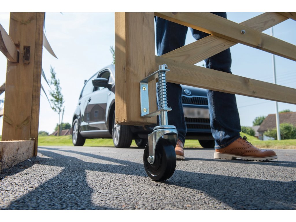 Schwenkrad mit Feder. Dank seines Designs hinterlässt es keine Spuren auf dem Boden. Tragfähigkeit 57 kg.