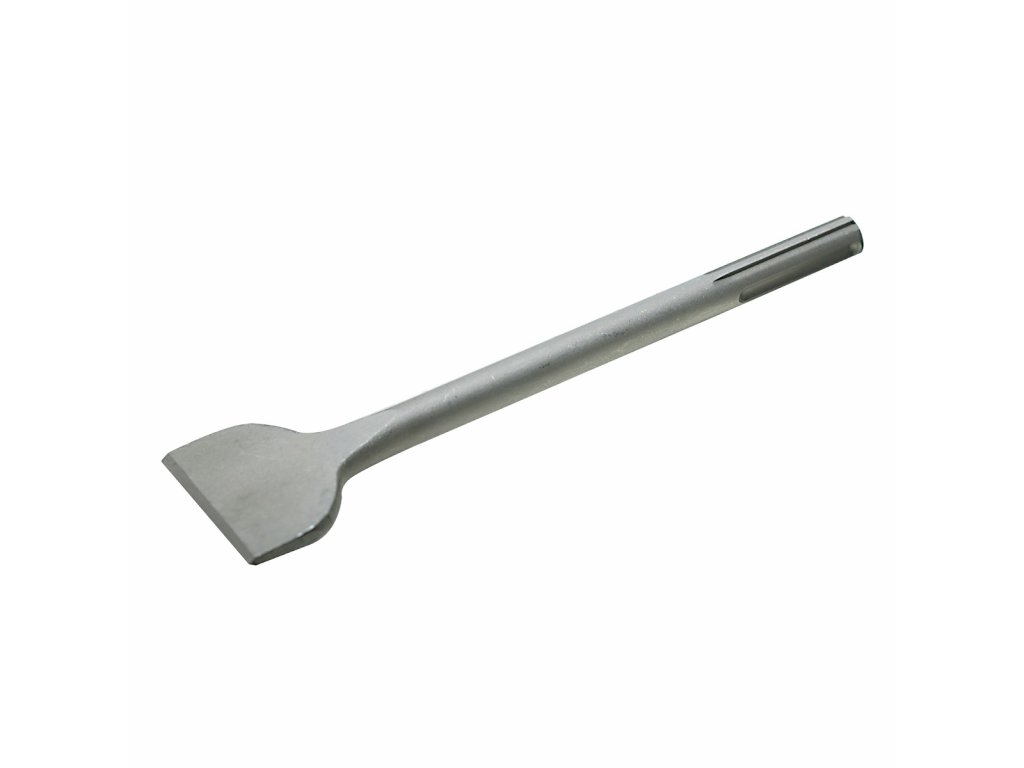 SDS-Flachmeißel aus gehärtetem und geschmiedetem Stahl, geeignet für Abbrucharbeiten und Pflasterabtrag. Schaftdurchmesser 18 mm.