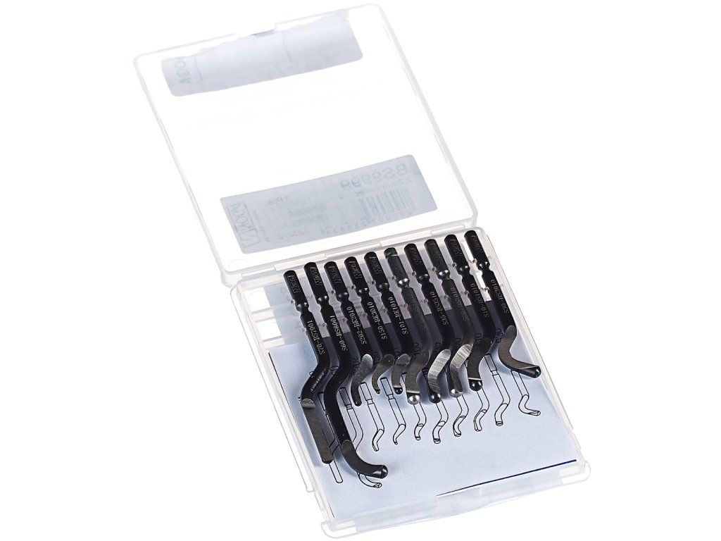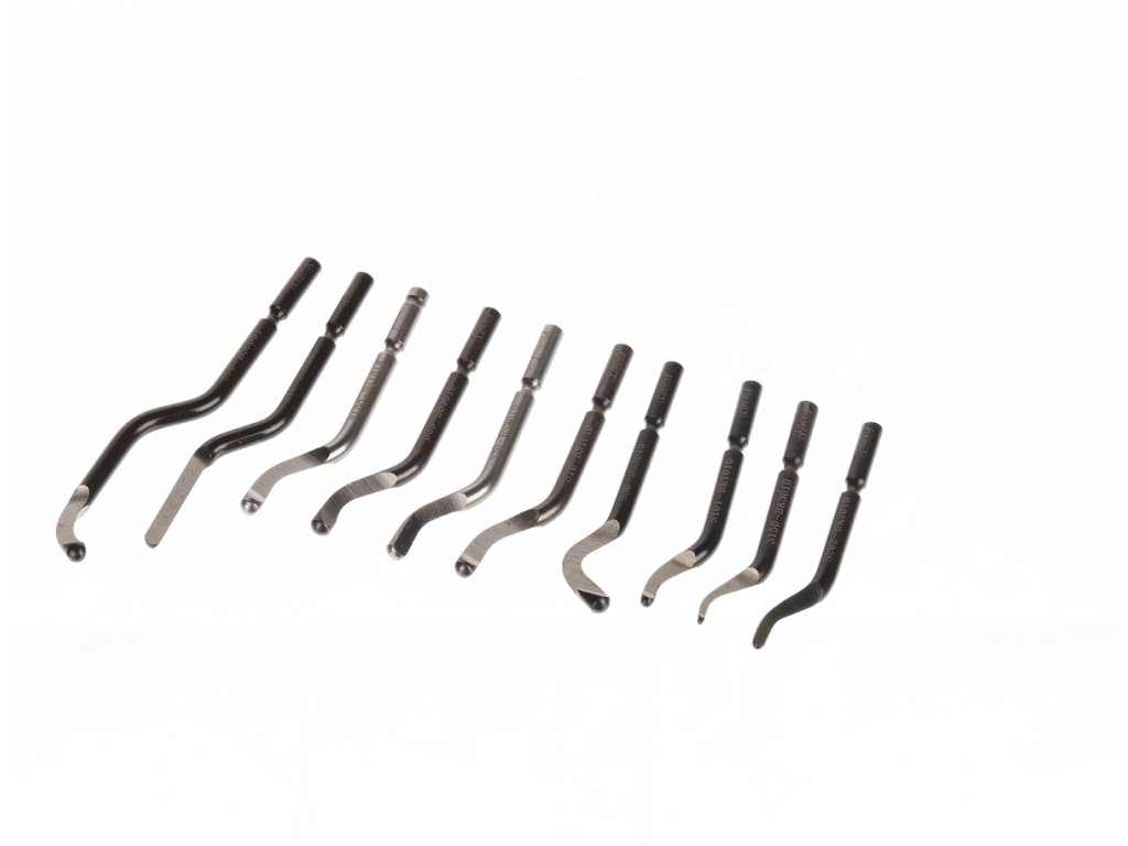 Am häufigsten verwendete Messer mit "S"-Einspannung (Durchmesser 3,2 mm) zusammen in einem Set. Enthält 10 St. Besteht aus folgenden Messern: - S10 - Bestell-Nr. BS1010, - S20 - Bestell-Nr. BS2010, - S30 - Bestell-Nr. BS3010, - S35 - Bestell-Nr. BS3510, - S60 - Bestell-Nr. BS6001, - S70 - Bestell-Nr. BS7001, - S101 - Bestell-Nr. BK1010 und - S202 - Bestell-Nr. BK2010.