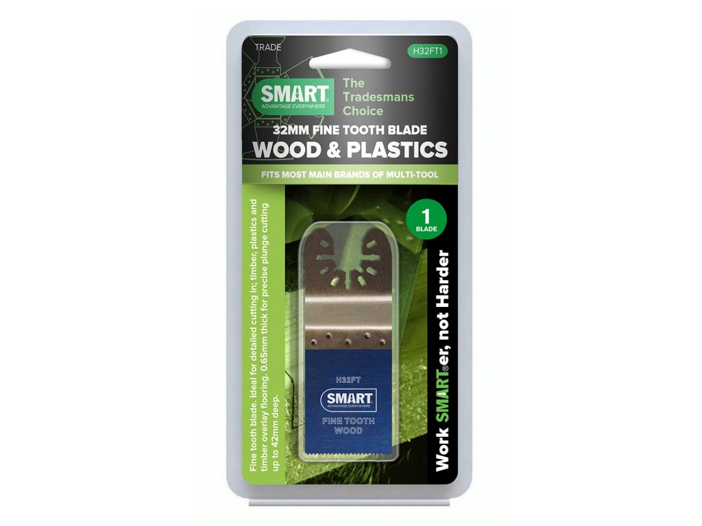 Sägeblatt für Holz und Kunststoff hergestellt in Großbritannien. Es hat eine Klinge mit feinen Zähnen für einen detaillierten Schnitt in Holz, Kunststoff und Holzböden. Auch zum Abschneiden der Ecke eines Blechs geeignet. Flügelbreite 32 mm. Blechstärke 0,65 mm. Die Marke SMART produziert einige der besten oszillierenden Multifunktions-Sägeblätter der Welt und ist die einzige Marke auf dem Markt, die eine Kombination ihrer eigenen Blätter mit dem patentierten STARLOCK-Aufsatz anbietet.