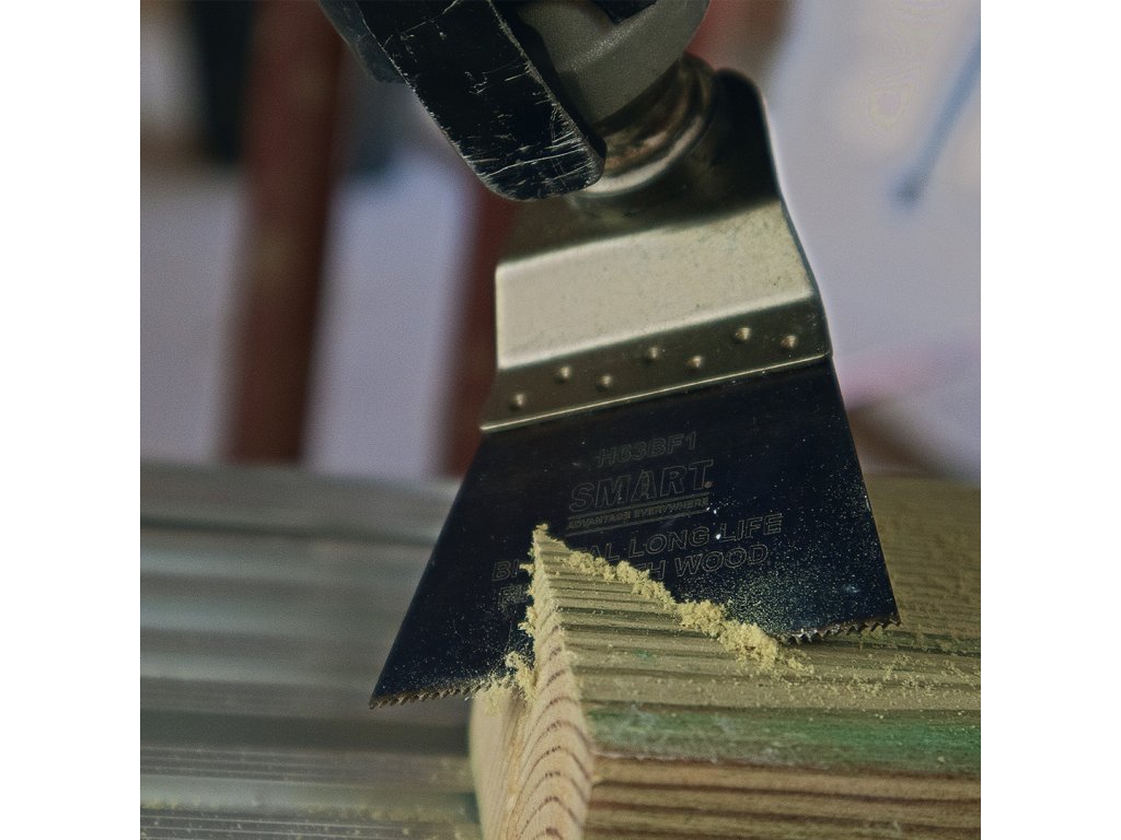 Sägeblatt für Holz und Kunststoff hergestellt in Großbritannien. Es hat eine Klinge mit feinen Zähnen für einen detaillierten Schnitt in Holz, Kunststoff und Holzböden. Auch zum Abschneiden der Ecke eines Blechs geeignet. Klingenbreite 63 mm. Blechstärke 0,65 mm. Die Marke SMART produziert einige der besten oszillierenden Multifunktions-Sägeblätter der Welt und ist die einzige Marke auf dem Markt, die eine Kombination ihrer eigenen Blätter mit dem patentierten STARLOCK-Aufsatz anbietet.