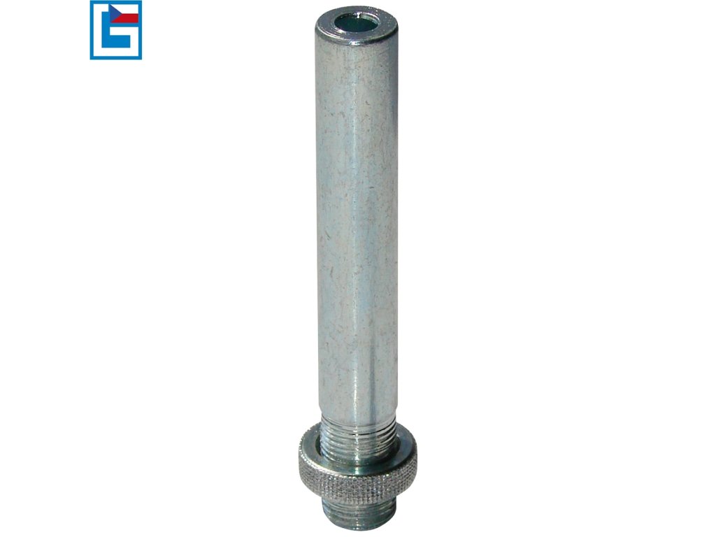 Aufbau: Pistolenkörper/Behälter aus Aluminium, Deckel mit Bajonettgewinde, Düse aus gehärtetem Stahl (→ Länge: 6 cm, Durchmesser: 5 mm).
