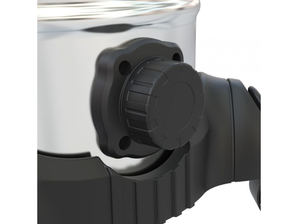30-l-Auffangbehälter aus Edelstahl (inklusive Schraube zum Ablassen des Wassers); Griff mit verschließbaren Belüftungsöffnungen (Luftstromregulierung, max. Volumen: 102 m3/Stunde).