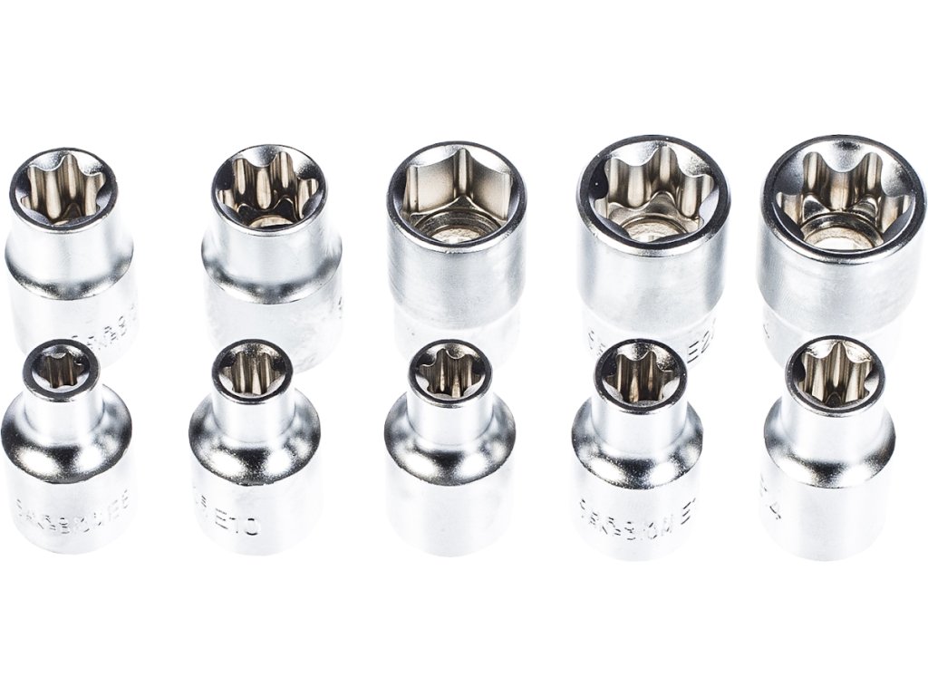 1/2"-Steckbitsatz aus CrV-Stahl, Länge 38 mm E8, 10, 11, 12, 14, 16, 18, 20, 22, 24.