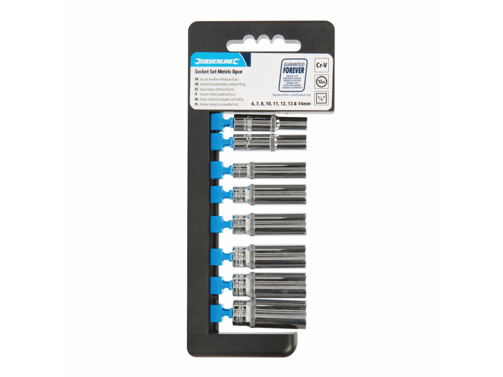 Steckschlüssel 1/4" 12-kant 6 - 14 mm - 8 Stück lang Silverline