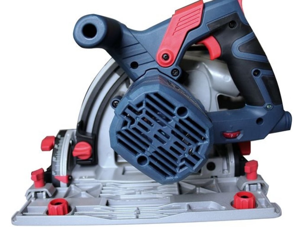 Kompakte Tauchsäge, ausgelegt für Innentauchschnitte in Holz, Faser-/Spanplatten, Latten oder Verbundbaustoffe.