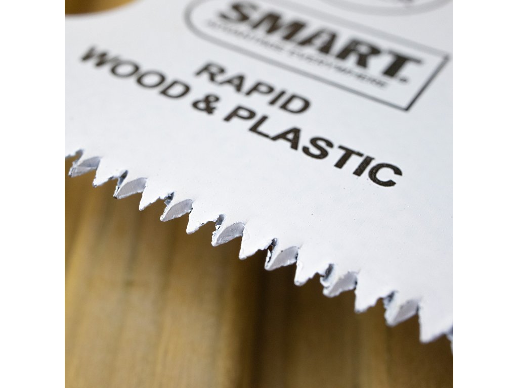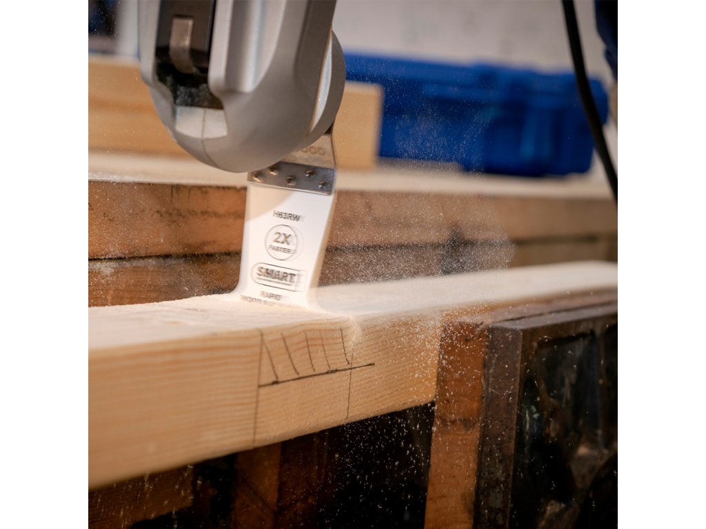 Sägeblatt für Holz und Kunststoff hergestellt in Großbritannien. Der RAPID-Typ schneidet schneller, sauberer und tiefer als jede andere oszillierende Holzklinge! Ideal zum Schneiden von Weich- und Hartholz (z. B. Eiche) oder Laminatböden. Rapid-Messer haben ein gebogenes Zahndesign für maximale Präzision beim Beginn eines Schnitts. Die Marke SMART produziert einige der besten oszillierenden Multifunktions-Sägeblätter der Welt und ist die einzige Marke auf dem Markt, die eine Kombination ihrer eigenen Blätter mit dem patentierten STARLOCK-Aufsatz anbietet.