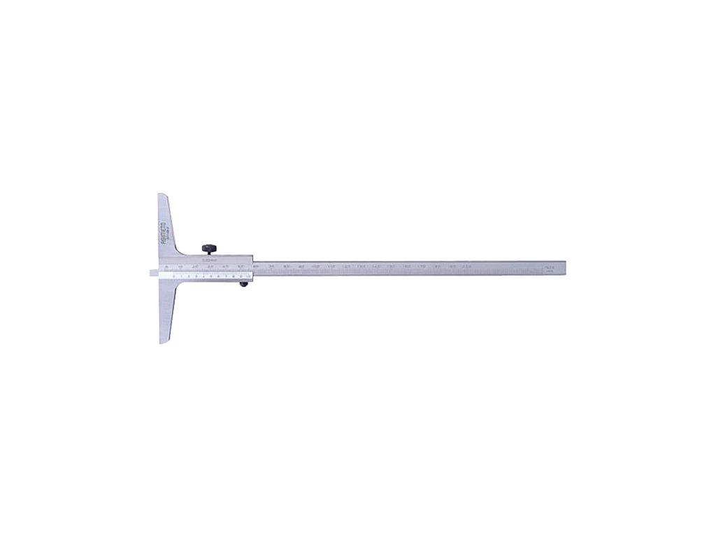 Analog-Tiefenmesser ohne Nase, Edelstahl mit gehärteten und präzise geschliffenen Messflächen Grundzubehör: Garantieschein, Bedienungsanleitung, Kalibrierungszertifikat, Kunststoffetui.
