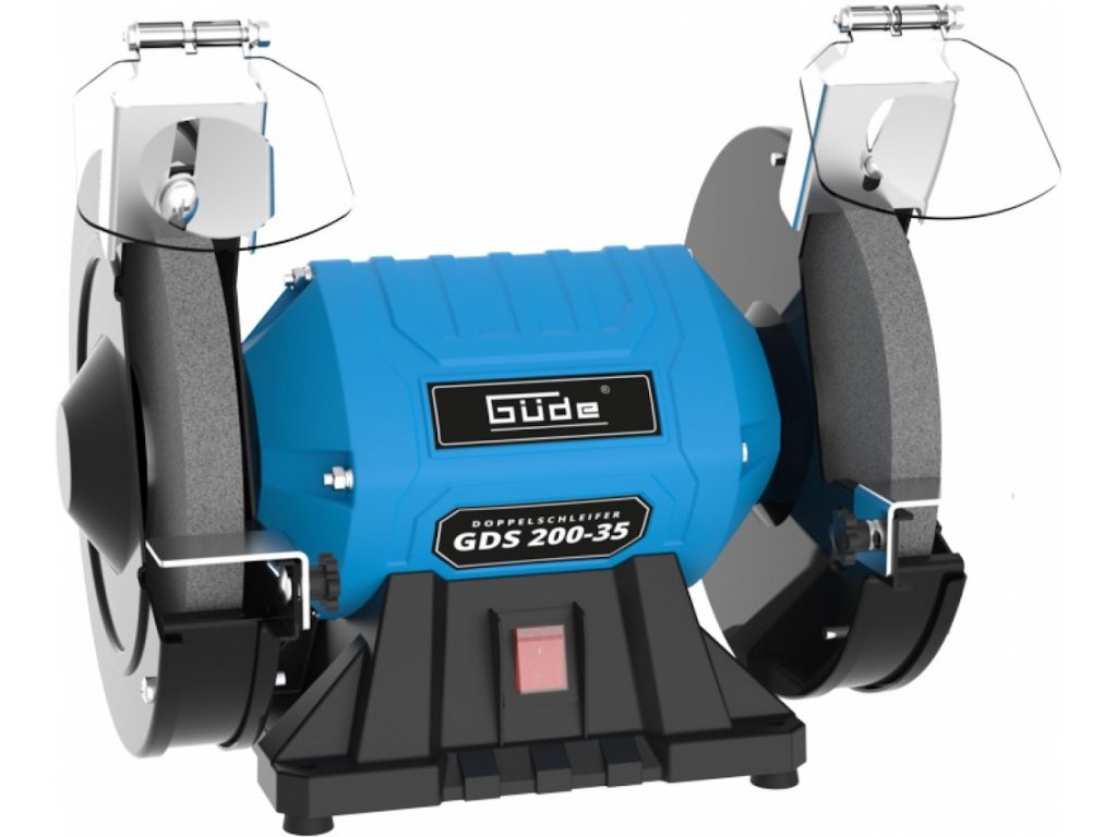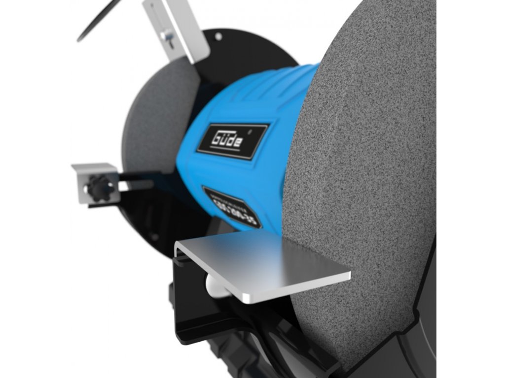 Aufbau: Leichtmetallgehäuse, verstellbare Werkstückauflagen, Schutzabdeckungen gegen Funkenflug, robuster Standfuß (inkl. Bohrungen zur Befestigung auf der Arbeitsplatte).