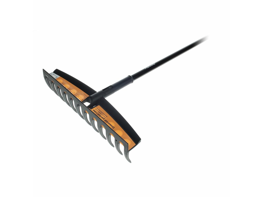 Der Universalrechen eignet sich zum Harken von Erde, Gras, Zweigen oder zum Vorbereiten von Blumenbeeten. Der obere Rand eignet sich zum Einebnen der Oberfläche von Blumenbeeten. Sie haben einen Aluminiumgriff. Breite: 410 mm, Länge: 1640 mm, Gewicht: 600 g. Original Fiskars Nummer: 135066.