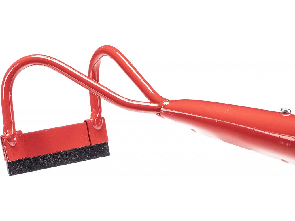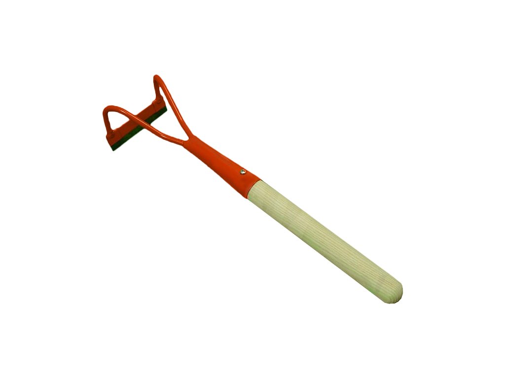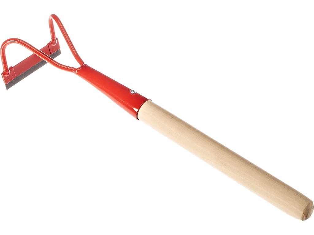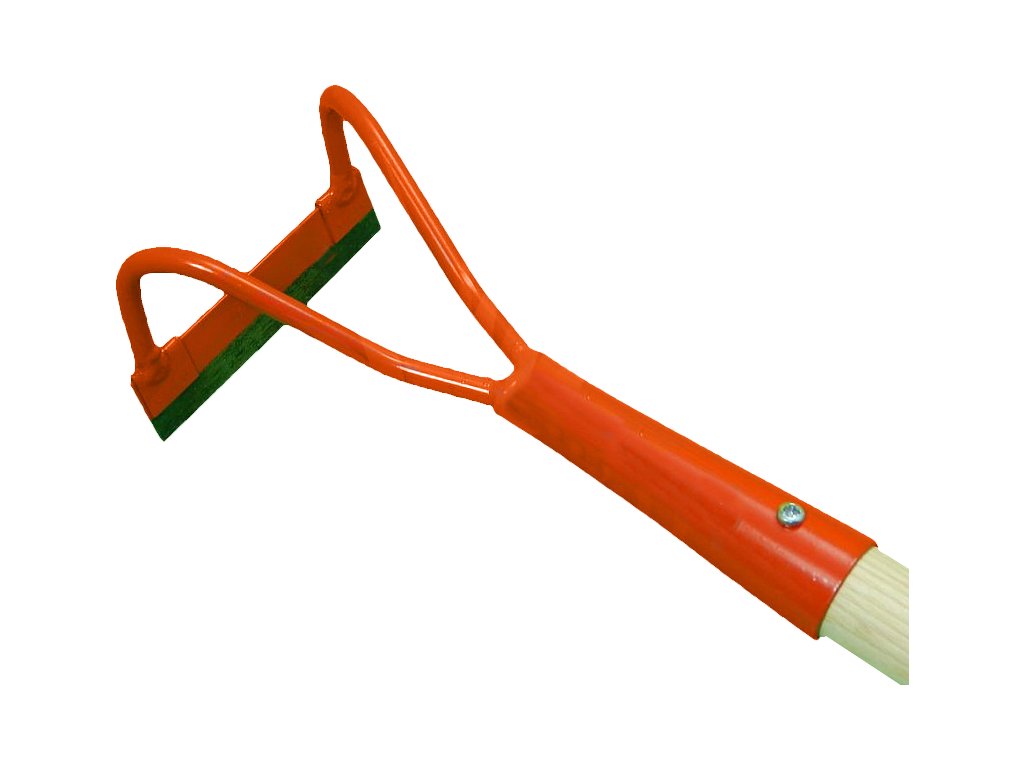 Unkrauthacke aus gehärtetem 1,2 mm dickem Federblech. Breite 10 cm, Höhe 7 cm, Gesamtlänge des Werkzeugs 40 cm. Geeignet zum Aufbrechen von trockenen Böden, zum Abhacken von Unkraut. Verwendbar auch zum Schaben von Schmutz von ebenen Oberflächen, was z. B. von Züchtern beim Reinigen von Käfigen geschätzt wird. Bestandteil des Produktes ist ein 20 cm langer Einhandgriff, der durch den Benutzer durch einen eigenen längeren Griff (Besenstiel) ersetzt werden kann.