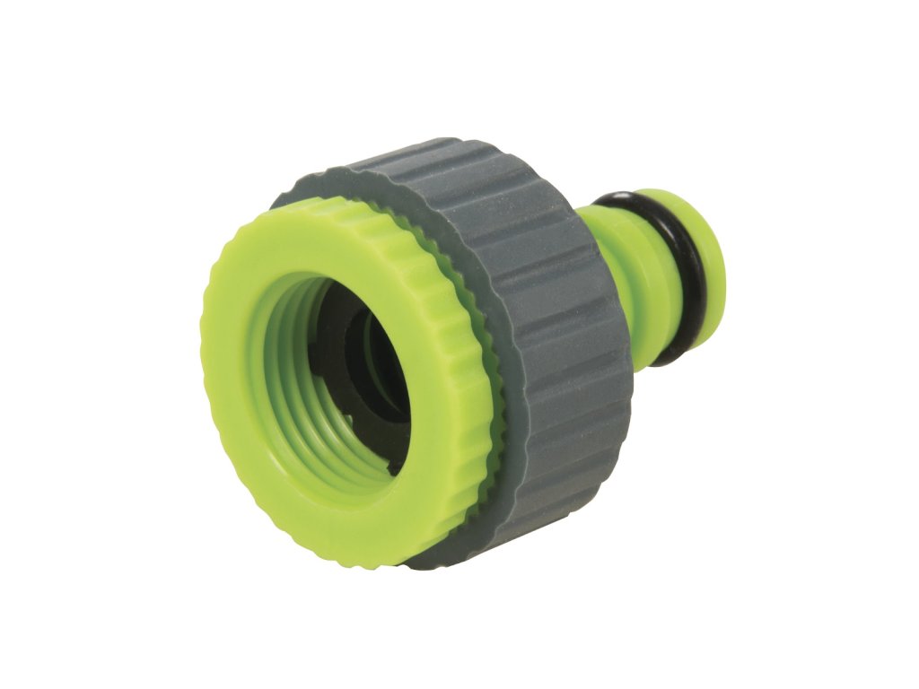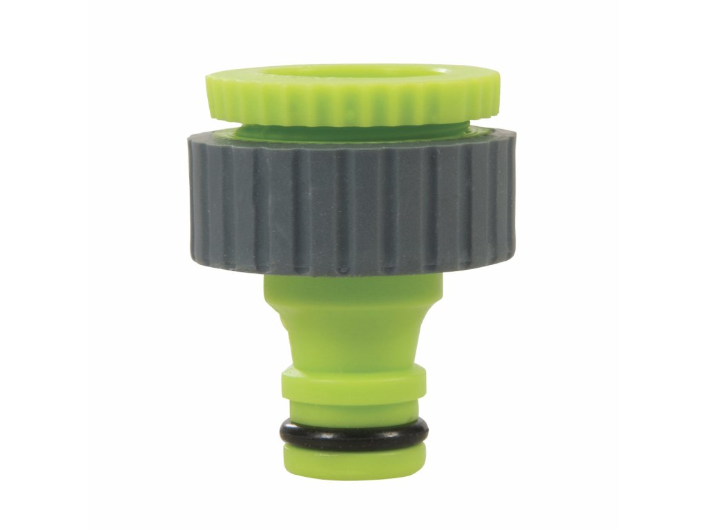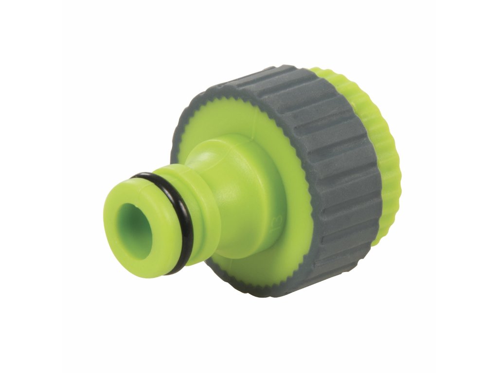 Universaladapter zum Anschluss aller gängigen Arten von Wasserschnellanschlüssen zum Aufschrauben an einen Wasserhahn mit 1/2"-3/4"-Gewinde mit O-Ring-Dichtung. Der Ausgang ist ein Anschluss für eine Schnellkupplung. Stecken Sie einfach den mit einer Schnellkupplung ausgestatteten Schlauch ein. Für den 1/2" Schlauch verwenden Sie den kompletten Adapter, für den 3/4" Schlauch schrauben Sie das innere Reduzierstück ab.