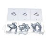 Für allgemeine Zwecke, Verbindung Seil – Haken. Kann nicht direkt in eine Kette komplettiert werden. Rundstangendurchmesser 8 mm/Lichtweite 16 mm/4 St. und 11 mm/Lichtweite 20 mm/4 St. Material Kohlenstoffstahl, verzinkt, in einer Kunststoffkassette geliefert.