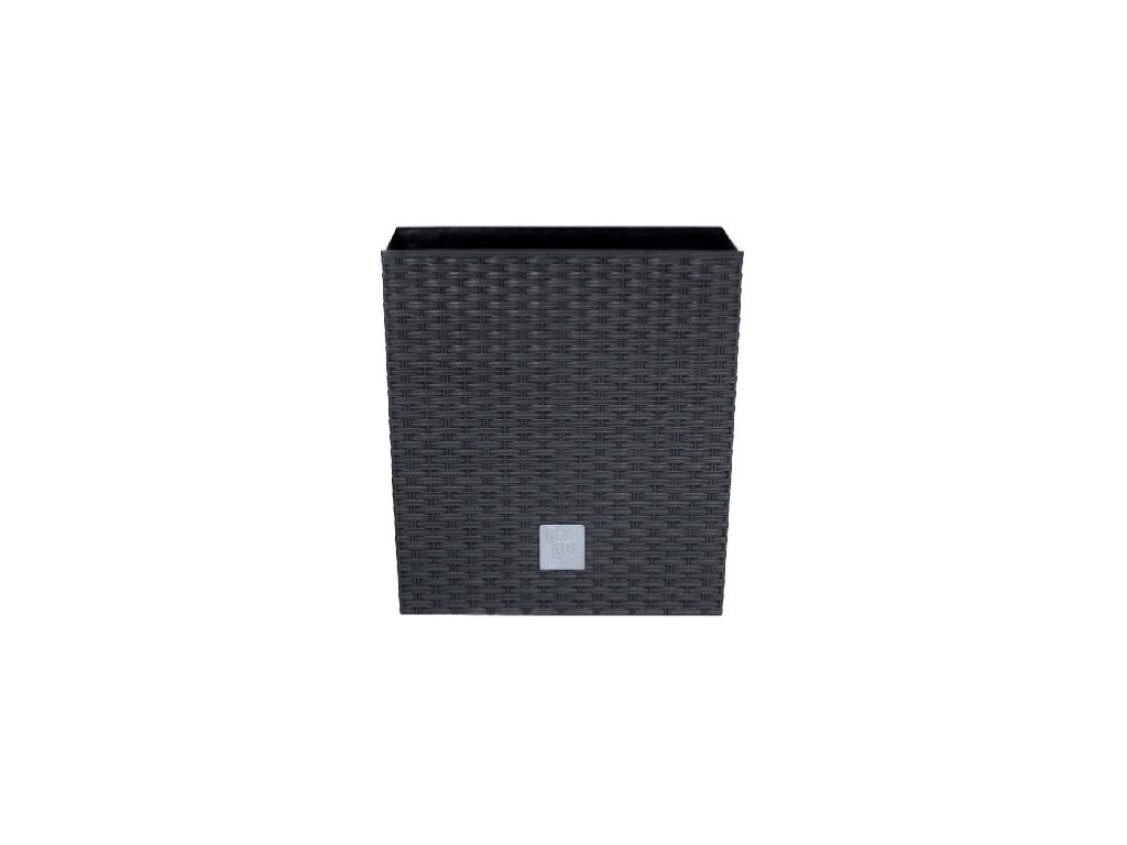 Der Kunststoff-Blumentopf RATO LOW, der das Rattanweben originalgetreu imitiert, eignet sich für Innenräume, Terrassen und Balkone.
