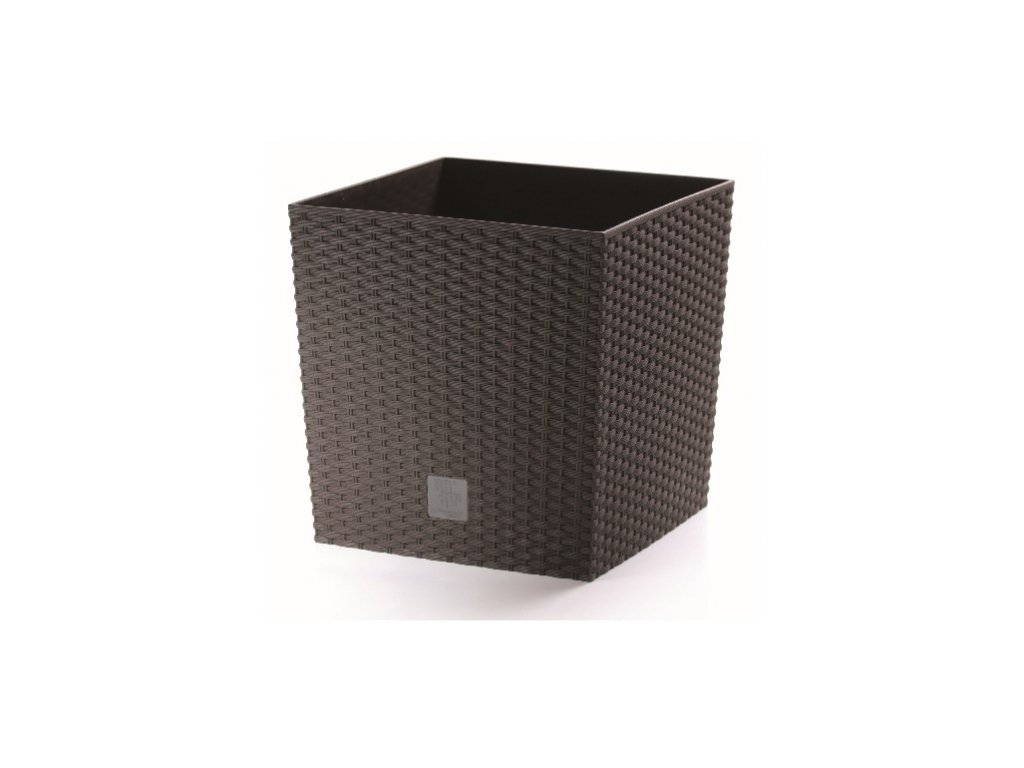 Der Kunststoff-Blumentopf RATO LOW, der das Rattanweben originalgetreu imitiert, eignet sich für Innenräume, Terrassen und Balkone.