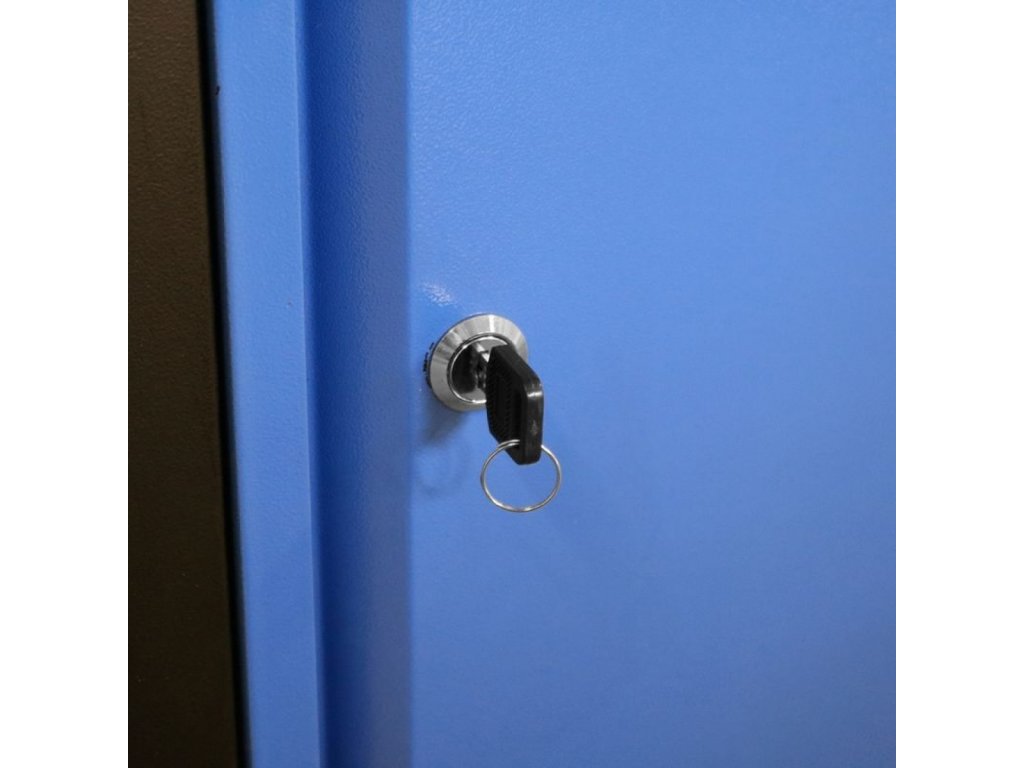 Ausstattung: 2 Schubladen (→ L × B × H: 440 × 400 × 120 mm; max. Fassungsvermögen: 20, Vollauszug – Teleskopführungen); 2 abschließbare Türschränke (→ L × B × H: 465 × 400 × 390 mm; Tür innen verstärkt, Zylinderschlösser – 1/1 Schlüssel).