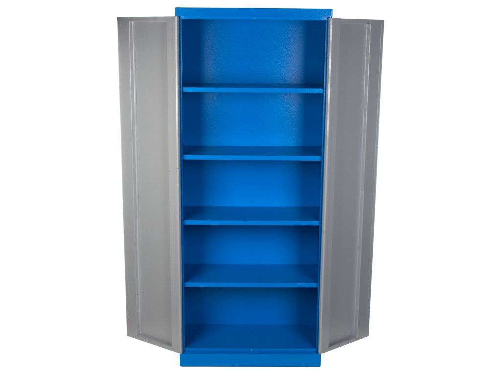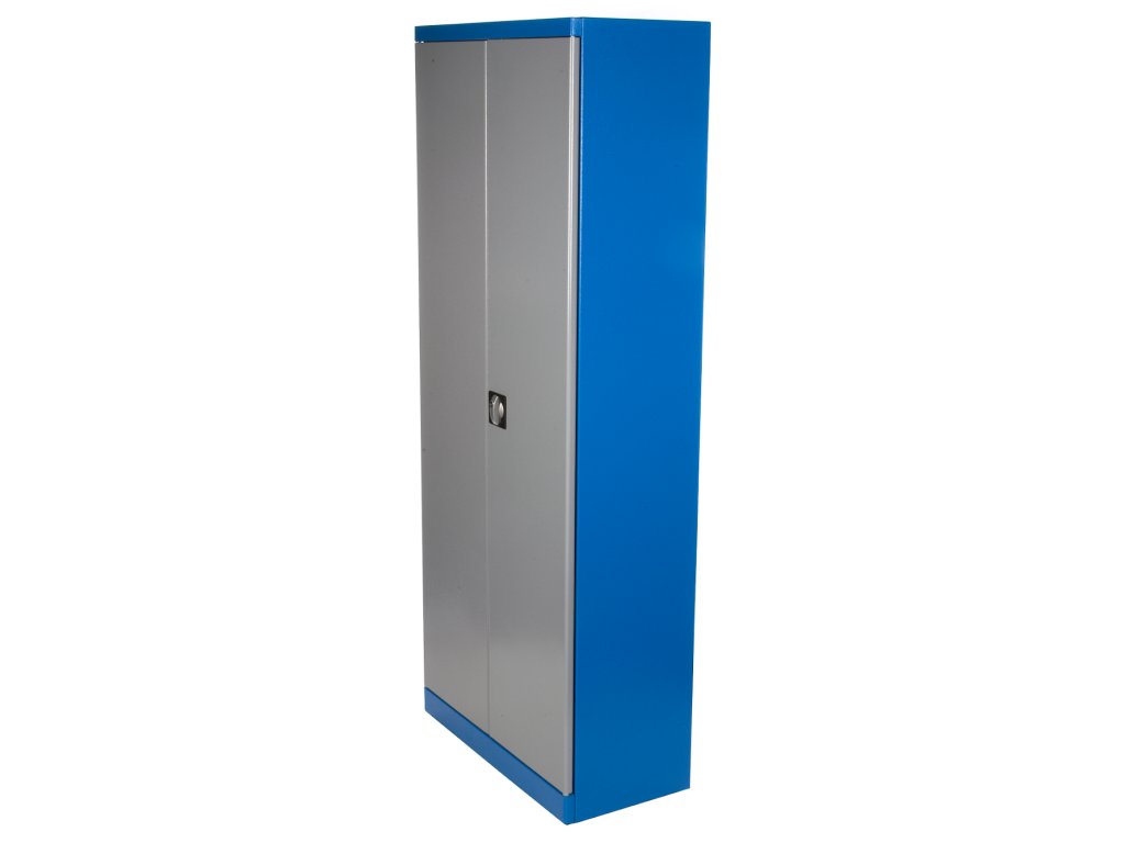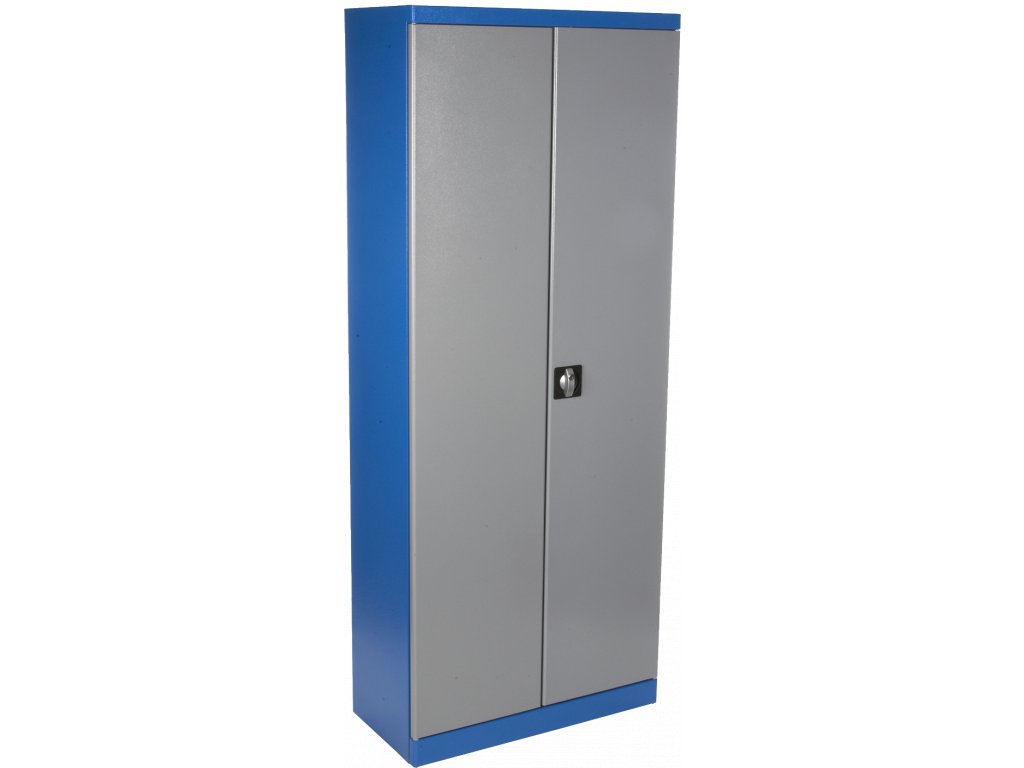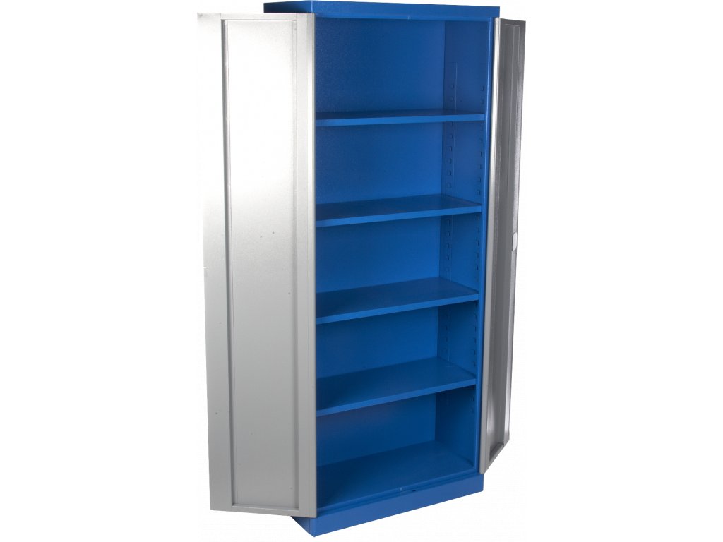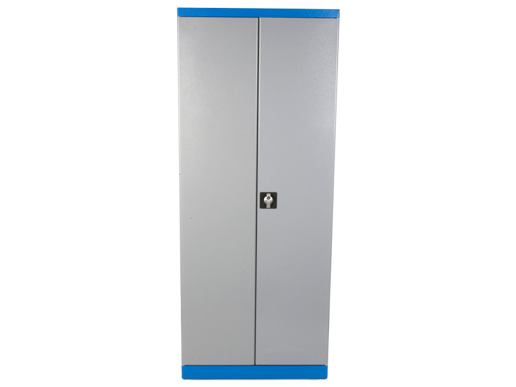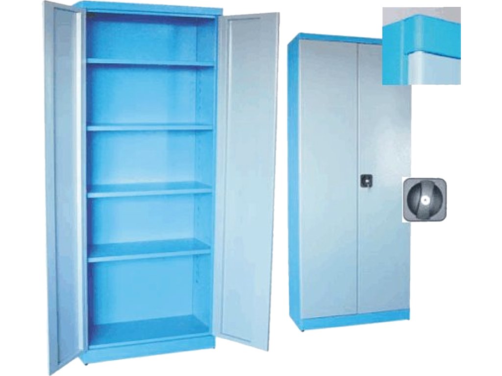 Design mit rundlichen Kanten, Pulvermetalurgie, Konstruktion komplett aus Metall, bereits zusammengebaut. 2-Türen-, 4 Fächer (universal verstellbar). Innenliegende Scharniere und Schließstange, Stangenschloss, doppelte Sperrung. Abmessungen: Breite 780 mm × Tiefe 380 mm × Höhe 1 920 mm.