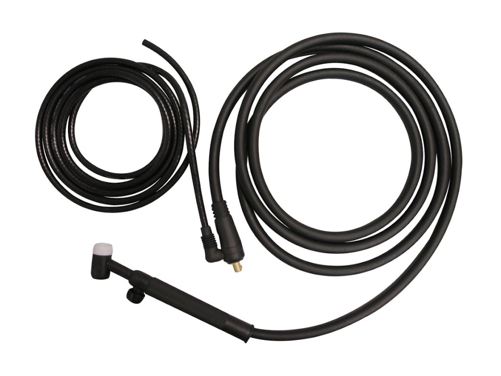 WIG-Brenner (→ manuelle Einstellung des Gasflusses über ein Ventil, 4 m flexibler Kabelbaum mit DINSE 9-Bajonettanschluss, Gaskühlung).