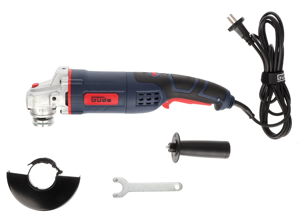 Kompakter Winkelschleifer zum Schneiden, Schruppen oder Bürsten von Metall-/Stein-/Keramikmaterialien unter den Bedingungen von Heimwerkstätten, Hütten, Hütten usw. (→ max. Scheibendurchmesser: 125 mm).