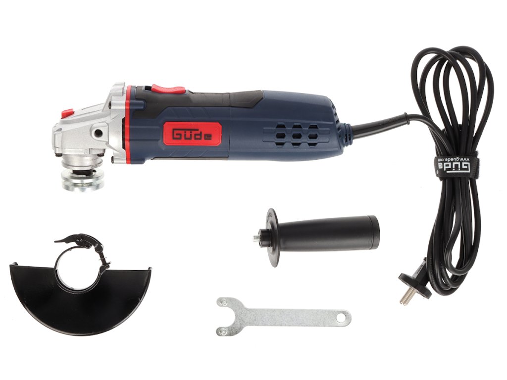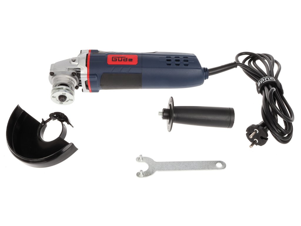 Praktischer Winkelschleifer zum Schneiden, Schruppen oder Bürsten von Metall-/Stein-/Keramikmaterialien unter den Bedingungen von Heimwerkstätten, Bauernhöfen, Hütten usw. (→ max. Scheibendurchmesser: 125 mm).