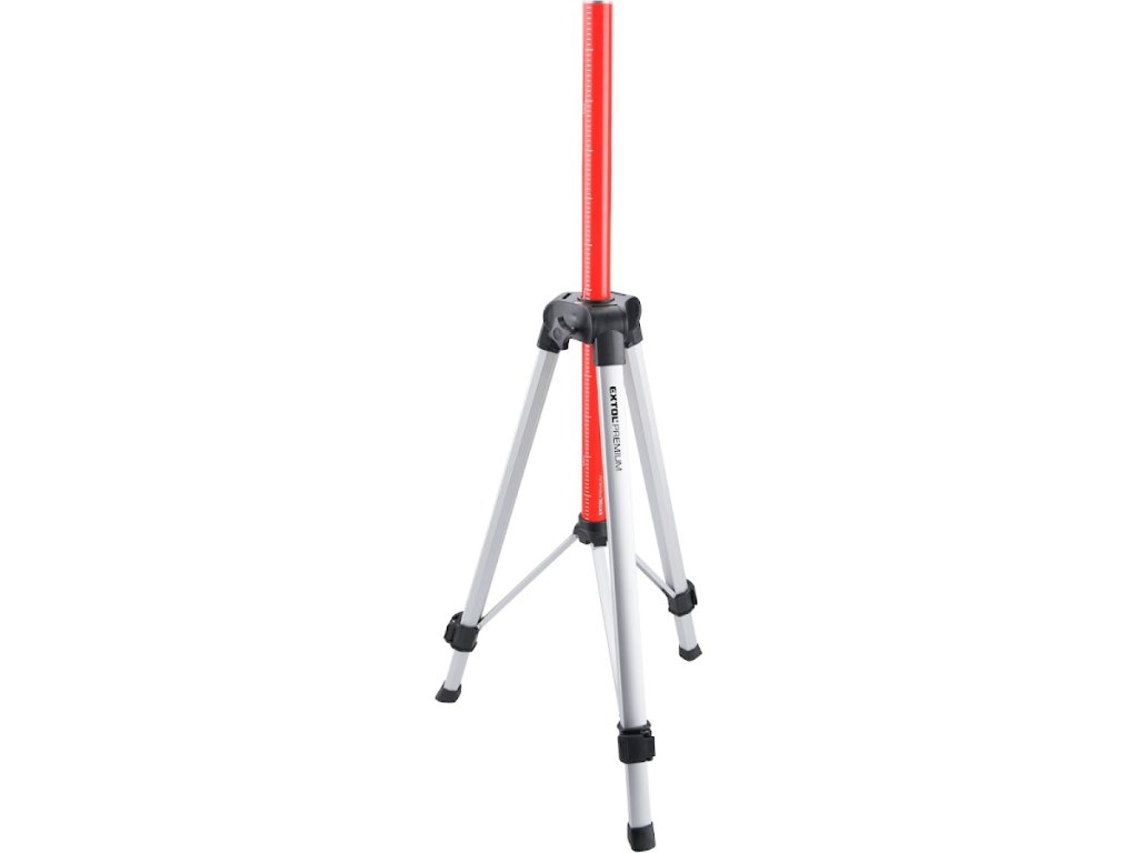 - mit einer Feststellschraube zur Fixierung der Stange in beliebiger Höhe und einer Zentrierlibelle